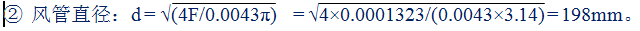 ① 風(fēng)管截面積:F = Q/(3600υ) = 16.67/(3600×35) = 0.0001323m2。