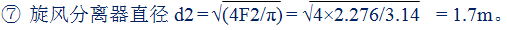 ⑥ 則旋風(fēng)分離器截面積為F2 = Q/8500 = 19350/8500 = 2.276m2。