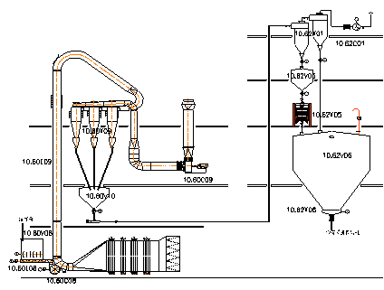 通常玉米粉氣流干燥的旋風(fēng)分離器布置和安裝在三樓或四樓,玉米粉輸送風(fēng)管就布置和安裝在玉米粉干燥的旋風(fēng)分離器下面(在二樓或三樓)。